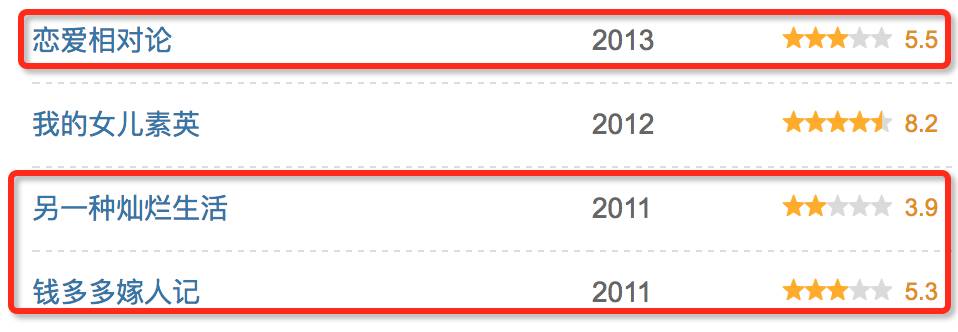 差不多每年一部剧,产量不高,但是质量都还算不错(下图来自豆瓣)。
