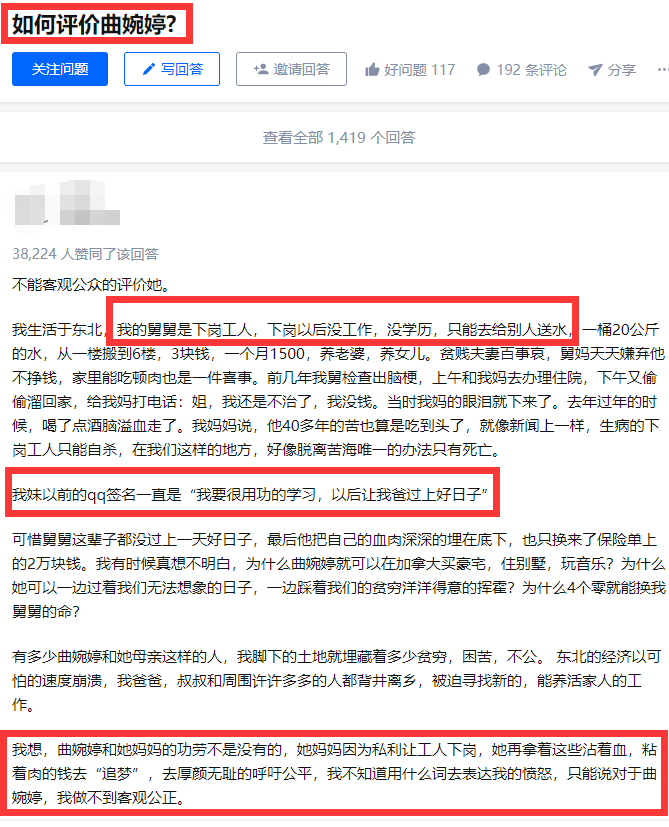 有人说,将曲婉婷的人生与下岗工人的生活放在一起是道德绑架。
