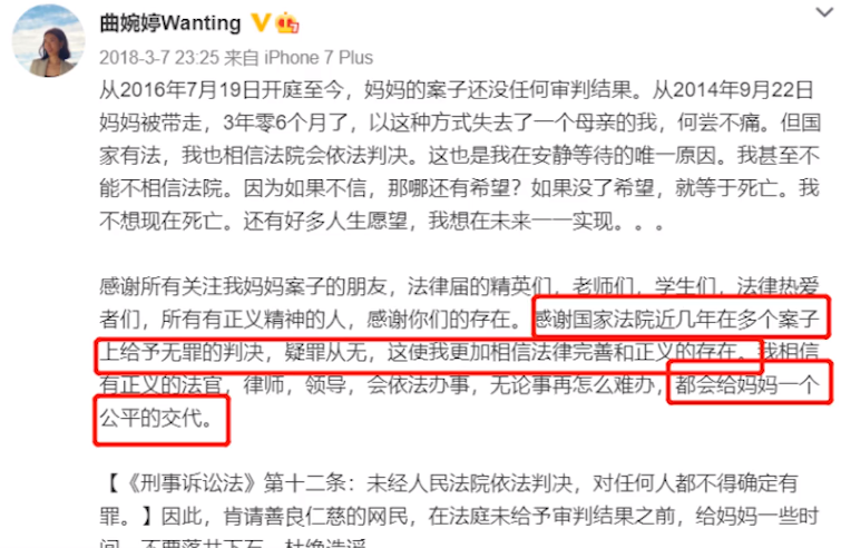 她努力营造为受难母亲发声的可怜女儿形象,被全网声讨就是曲婉婷想要看见的。