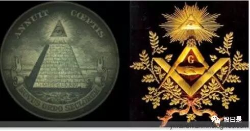 独眼(全视只眼),三角金字塔;是共济会特有的基本LOGO(密符)