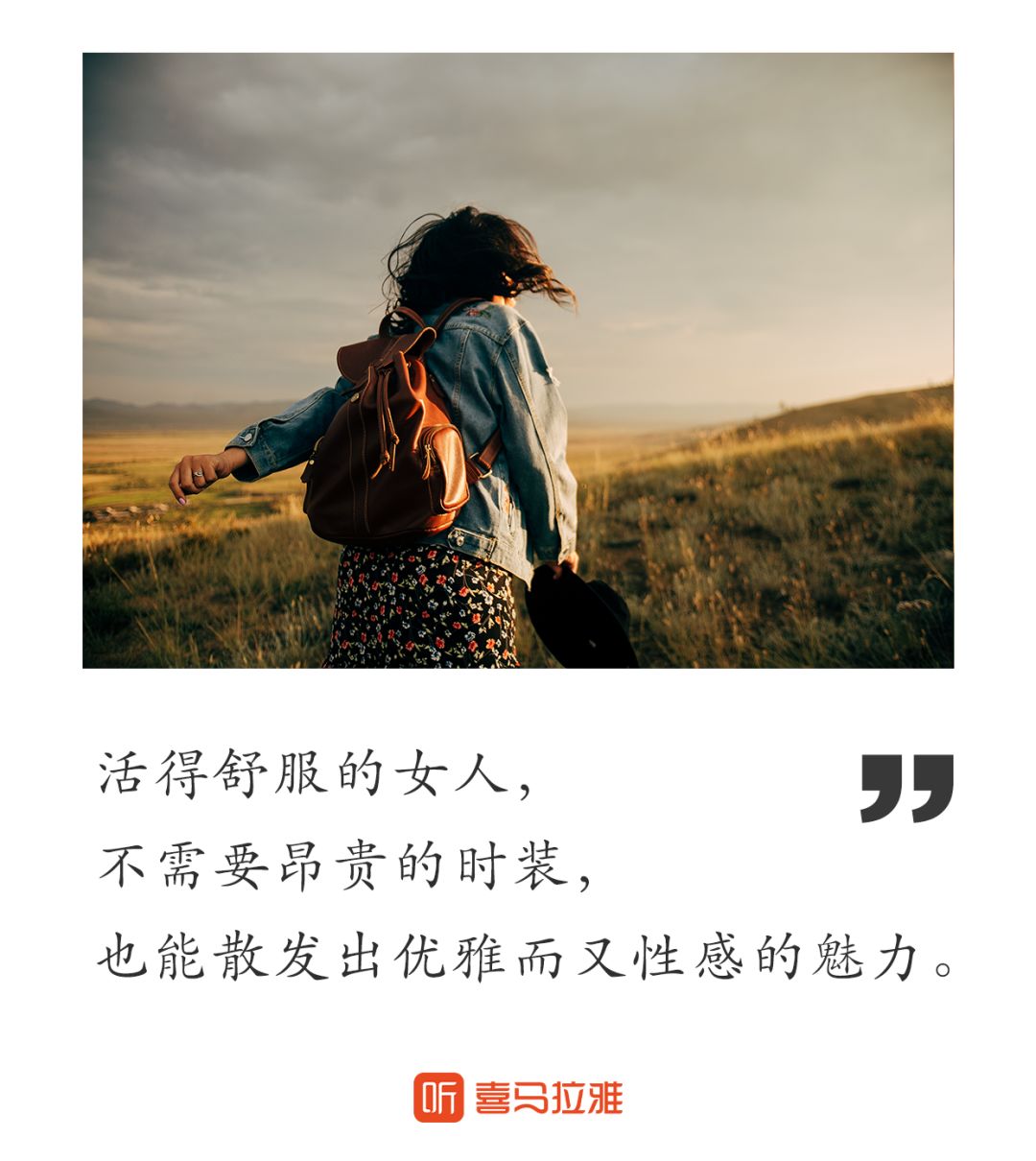 能够把自己活得舒服的女人,不需要昂贵的时装和精致的化妆,便能散发出优雅而又性感的魅力。