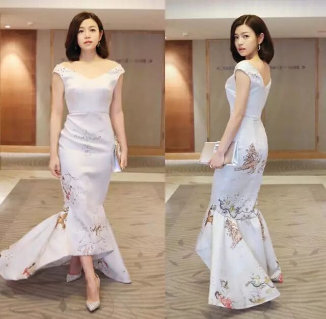 露肩V领高级礼服,衣身采用手工刺绣图案装饰,款式轮廓勾勒出身姿曲线,这样看起来不但清纯高贵,还性感妖娆多姿。满分!↑↑↑