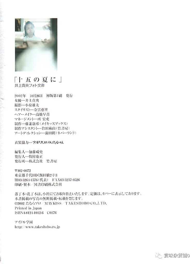 今天给大家分享的是井上真央在2002年出版的第一本个人写真集《十五の夏に》,摄影师是小泉雄太。