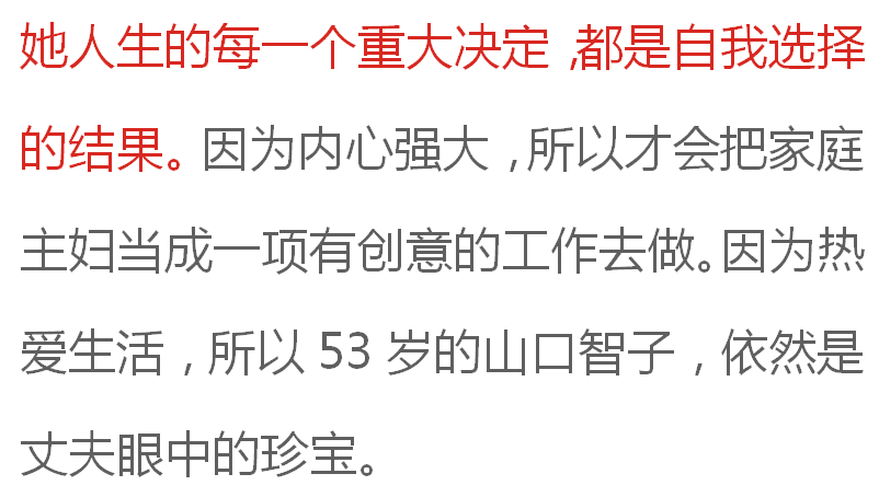 此后,山口智子演了好几部热播剧,“在实现当好家庭主妇的梦想之后,还可以有更多梦想呀!”