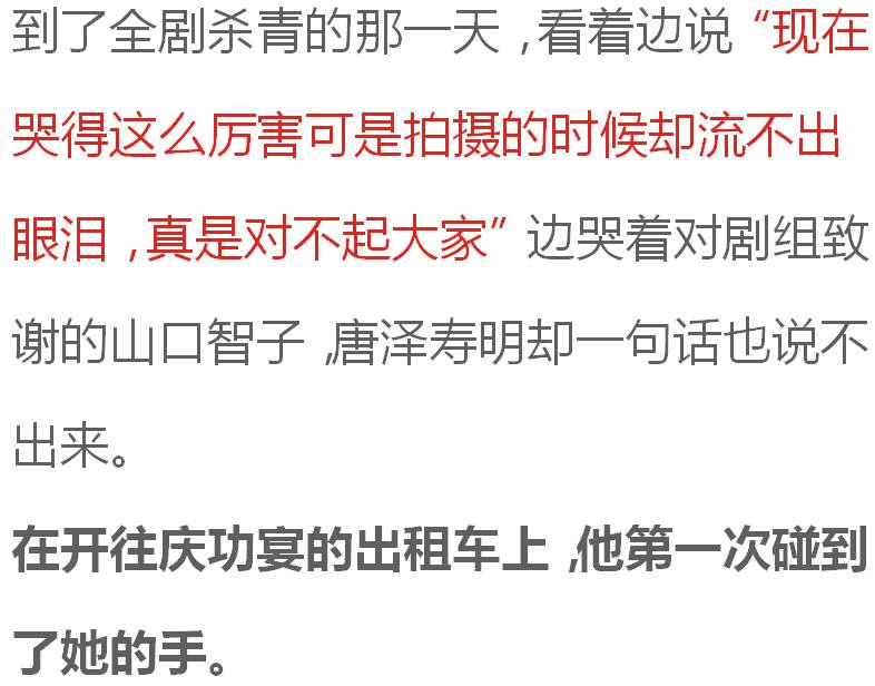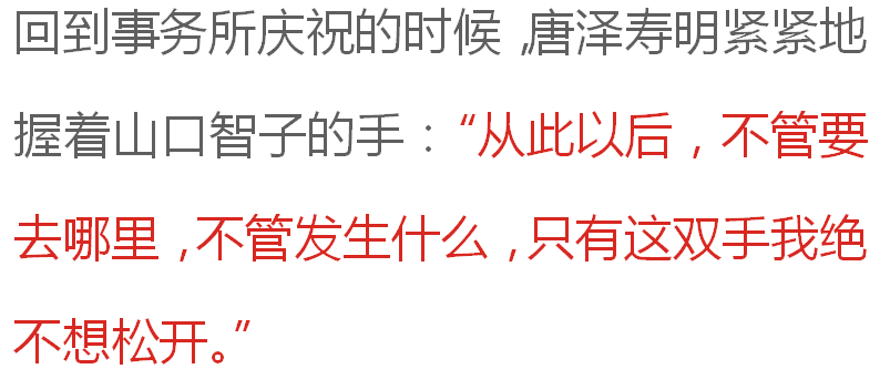唐泽寿明的好朋友松冈昌宏曾给山口智子爆料说:“你到国外出差的时候,我们跟唐泽出来喝酒。他突然说:啊!好想见山口!”