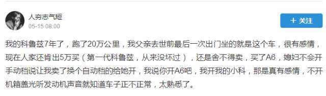 许多人开一辆车开久了,也会对其产生感情。毕竟承载过最亲近的人,去过许多难忘的地方,还放着自己的物品。一般念旧的人在车子能用的情况下都不会换。熟悉感意味着一种安全感。