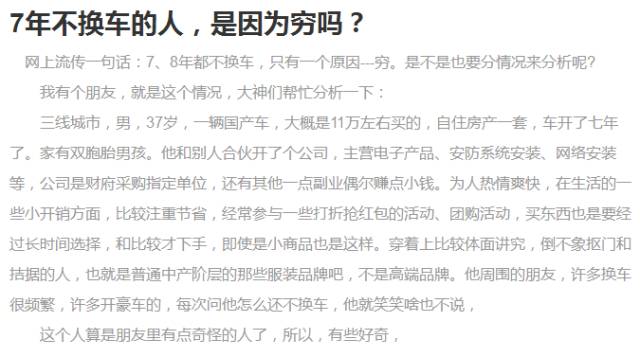 这是一种理财思维。他们更加倾向于资金能够转动起来,产生更多的收益,不希望自己换辆车来占用资金。他们也主张延迟享受。