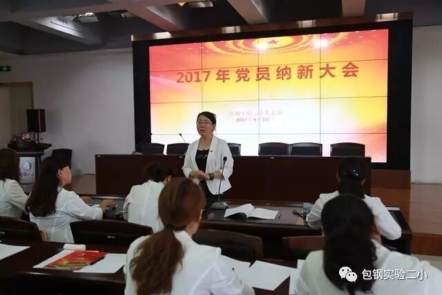 2017年9月13日下午,包钢实验二小党支部在昆河校区大会议室召开了发展党员大会,本次大会旨在吸纳优秀党员教师壮大党员队伍,为支部将来的发展打下坚实的基础。大会由王莉莉书记主持,支部44位党员参加。