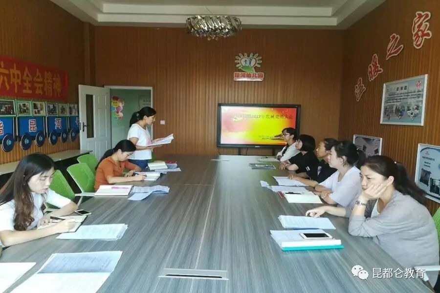 2017年9月8上午,昆河幼儿园党支部发展党员大会在四楼会议室召开,幼儿园的全体党员参加了会议。