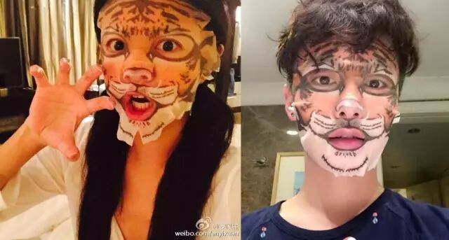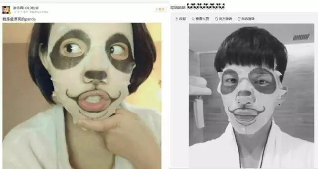 谢依霖和井柏然敷的是熊猫款。