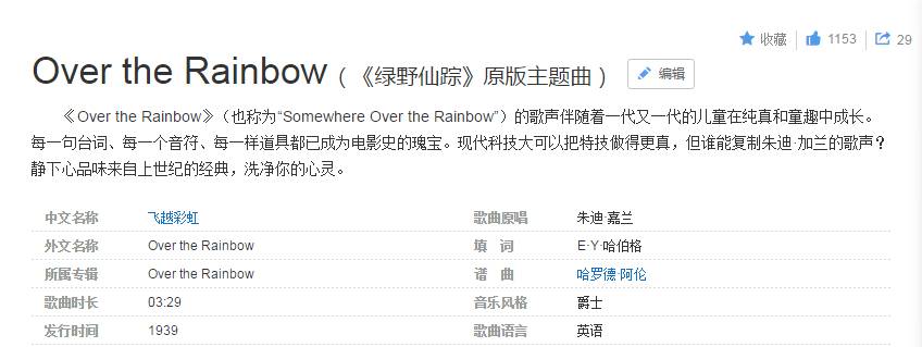 光是网易云音乐上,Over The Rainbow就由超过500个不同的版本。