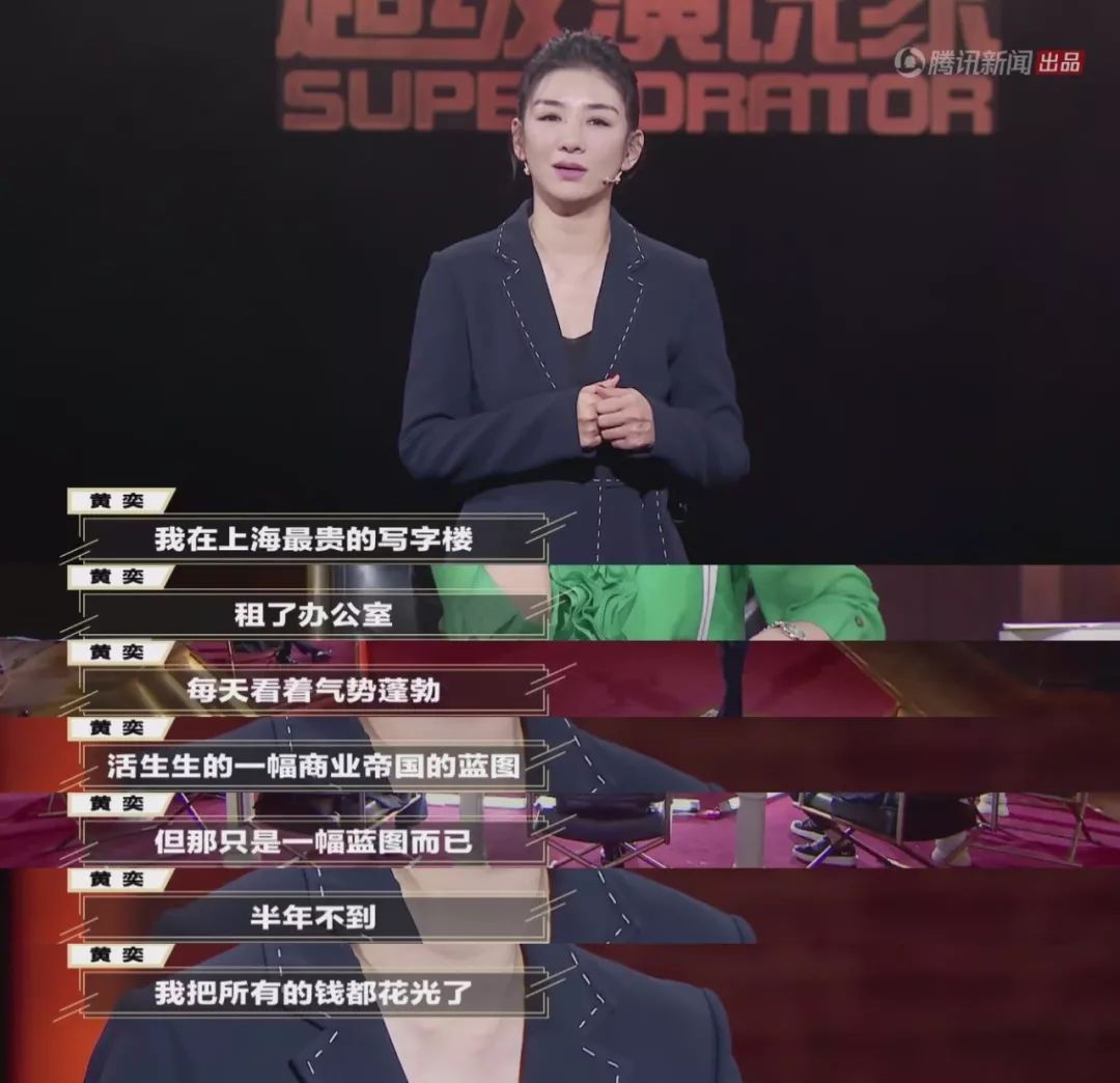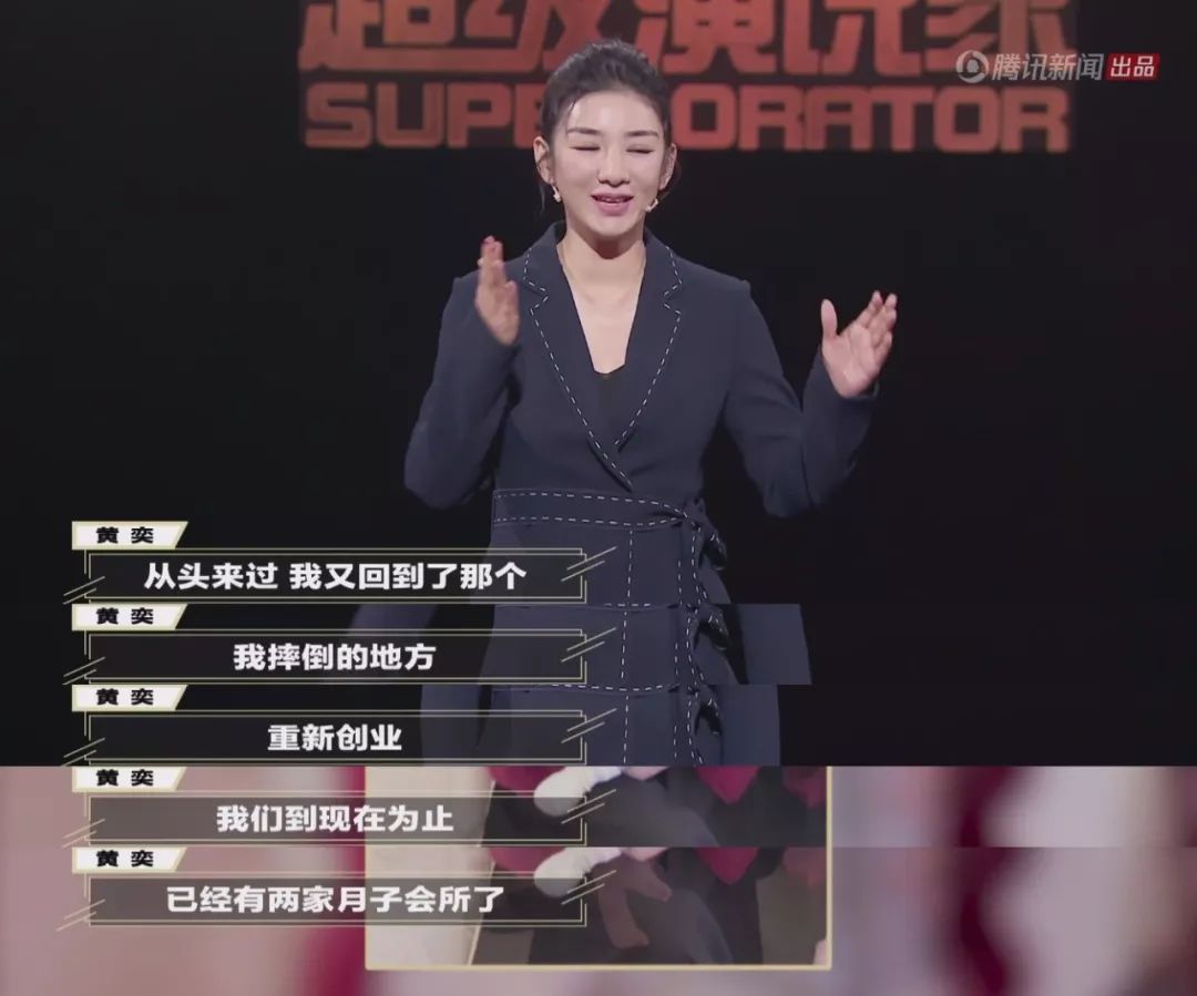 在《超级演说家》里,黄奕说过,直到开始尝试创业,她才发现原来赚钱这么难,原来创业非常容易失败,她的第一个“商业帝国”没搞半年就完蛋了。