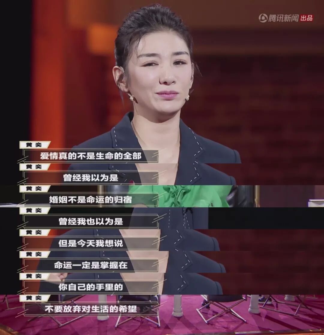 但这段演讲最好的地方就是,黄奕没在这个舞台上痛说离婚家史,也没花什么篇幅控诉前夫不堪,一味卖惨。