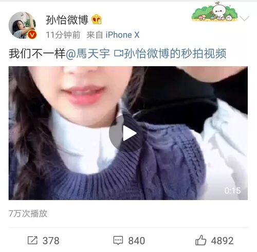 这边马天宇才消停,女主孙怡又跳出来“搞事”。她发了一条微博段视频,内容是和马天宇一起对嘴演唱“我们不一样”,同时还圈了马天宇,疑似站队。之后她也秒删了微博,搞事的同时轻松把自己送上了热搜,不得不感叹,这波操作着实666啊!