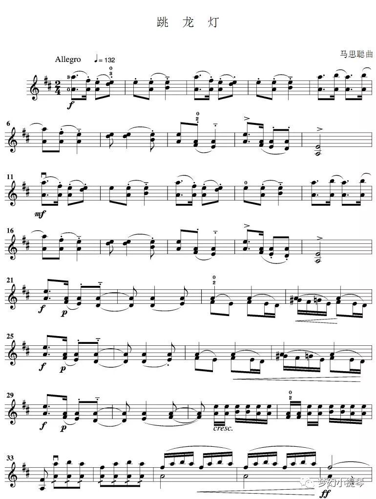 马思聪的跳龙灯表现的是人们在传统的元宵佳节上舞龙灯的欢快情景,主题热烈奔放,双音的音响和各种充满动性的节奏,增加了节日喜气洋洋的情绪。