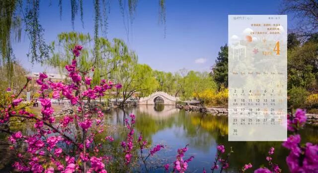 紫荆葳蕤,荷塘的一棹春水被微风吹皱。