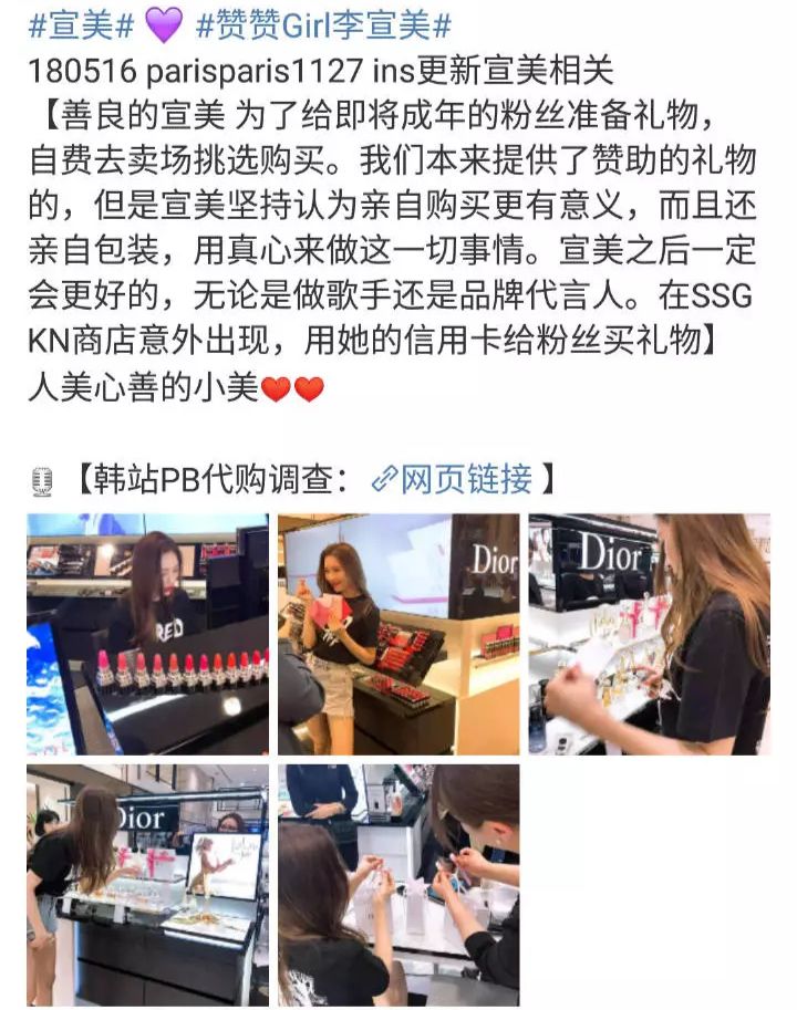 别人逆应援都是爱豆出一个想法,身边人去实施,可是宣美小姐姐真的是把粉丝当成自己的小姐妹看待,为了给刚刚成年的粉丝们送去祝福,自己到商场刷卡买单哦。