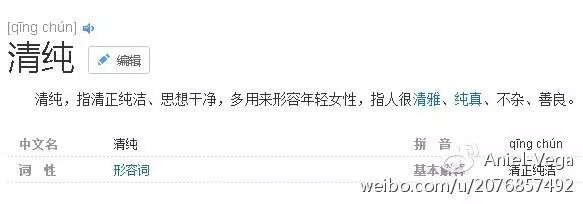 百度了下“清纯”这个词语。