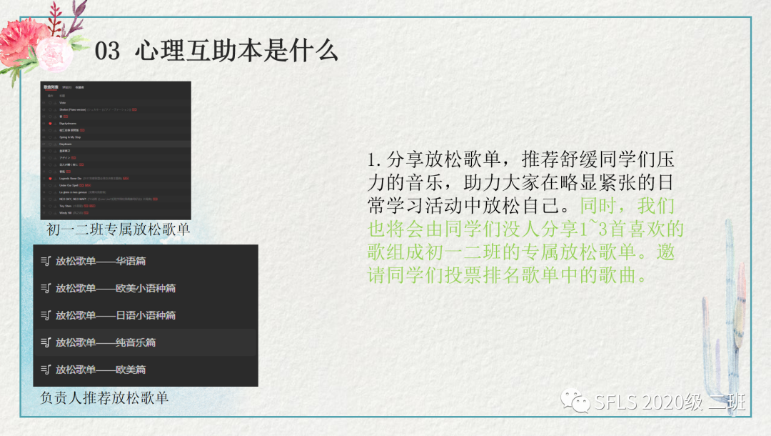 这周和上周五,初一2班举行了线上班会。班会由7个板块构成,分别是:时事备忘录、书海领航区、温馨互动园、智慧学习场、才艺展示秀、生活创意馆、心理互助本,都有不同的同学分别负责,其余同学们也有为活动内容积极投稿,下面就来看看大家班会中所讲的内容吧~