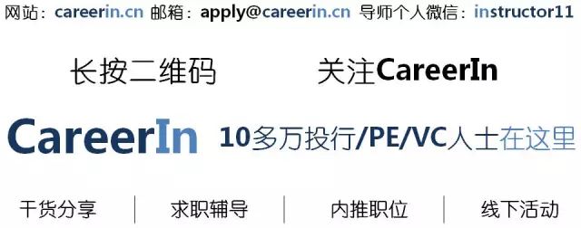 版权声明:CareerIn除发布原创干货以外,致力于优秀投行/PE/VC文章精选、精读。部分文章推送时未能与原作者取得联系。若涉及版权问题,敬请原作者联系我们。联系方式:微信instructor11