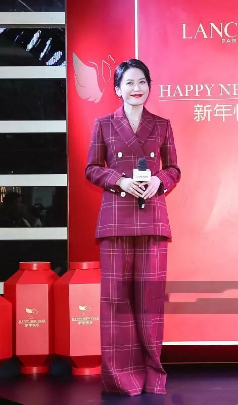 难得见俞飞鸿穿套除了黑色的西装,选择的还是玫红色,格子的图案,这种颜色比黑色鲜艳了不知道多少,尽显女人魅力!