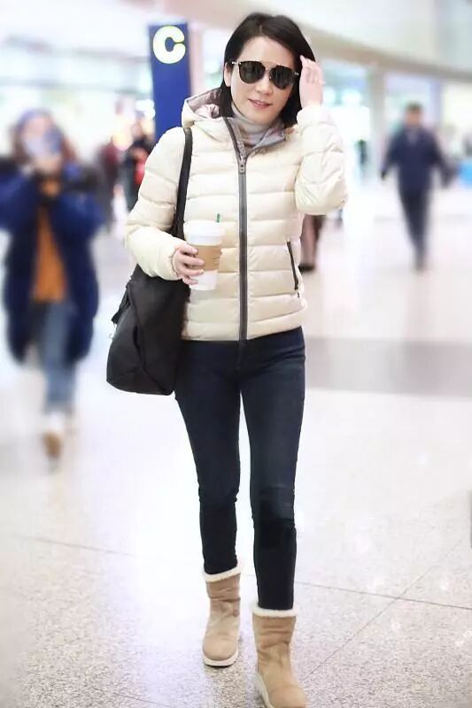 私底下俞飞鸿还比较接地气,大冬天的穿的也厚实,一件白色的羽绒服,下面也是黑色的打底裤,显得腿真细,真不像48的腿!
