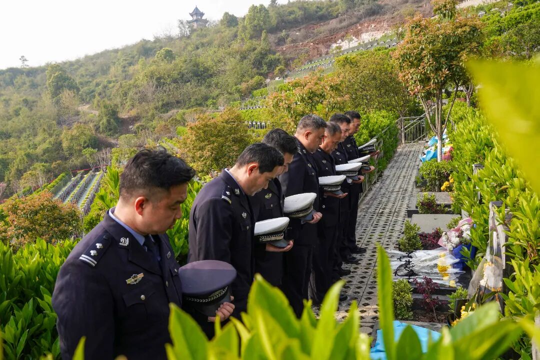 3月31日上午,在周涛墓前,他生前的同事、檀溪警务平台副大队长何宸说道。和他一起来看望周涛的,还有檀溪警务平台的民警代表。大家整齐列队、脱帽默哀,为周涛敬献鲜花,寄托最深切的思念。