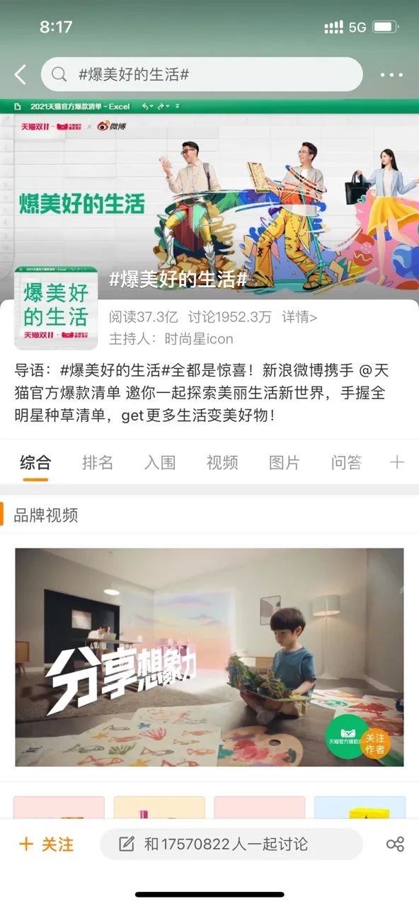 很重要的一点在于,明星自带的商业属性和粉丝基础,是KOL、主播等角色无法替代的价值,明星所带来的话题穿透度,会形成联动效应。比如在#爆美好的生活#的主题下,天猫和微博娱乐一起调动了惠英红、朗朗、蔡少芬、秦昊等1000多位知名艺人和美妆、数码、母婴等1800多个垂直领域KOL,跨圈层、从不同的视角参与分享种草内容的生产。