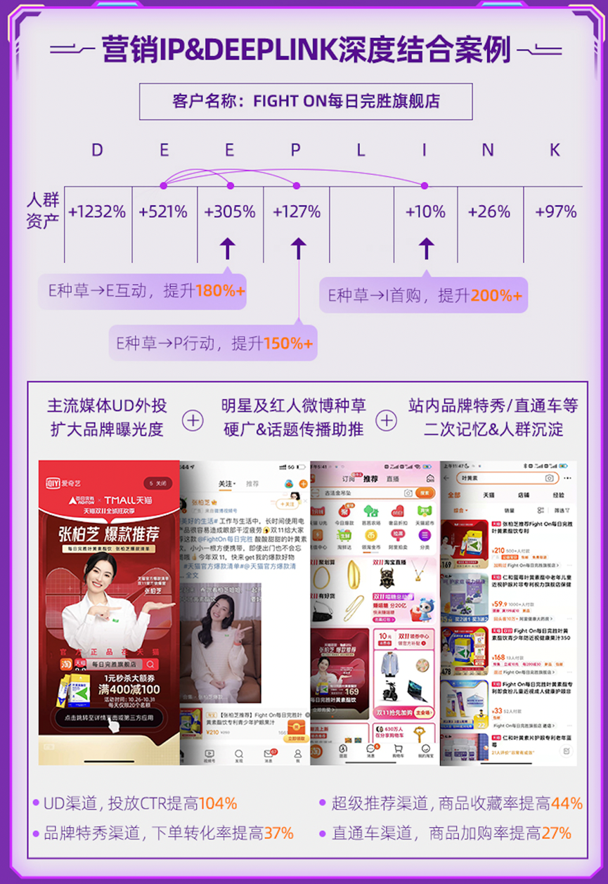 天猫官方爆款清单在今年双11给出了最新答案:把明星短视频种草与品牌商家数智化经营目标相结合,通过联合阿里妈妈,打造“粉丝人群洞察-高效能内容创新-全域精准种草-高粘人群沉淀”明星全域数智化营销打法,把明星种草圈层效应和粉丝经济通过深链经营Deeplink方法论,让明星种草品效合一显性化,成为品牌商家在淘系实现消费者全域经营和货品全生命周期经营双重目标的重要一环。