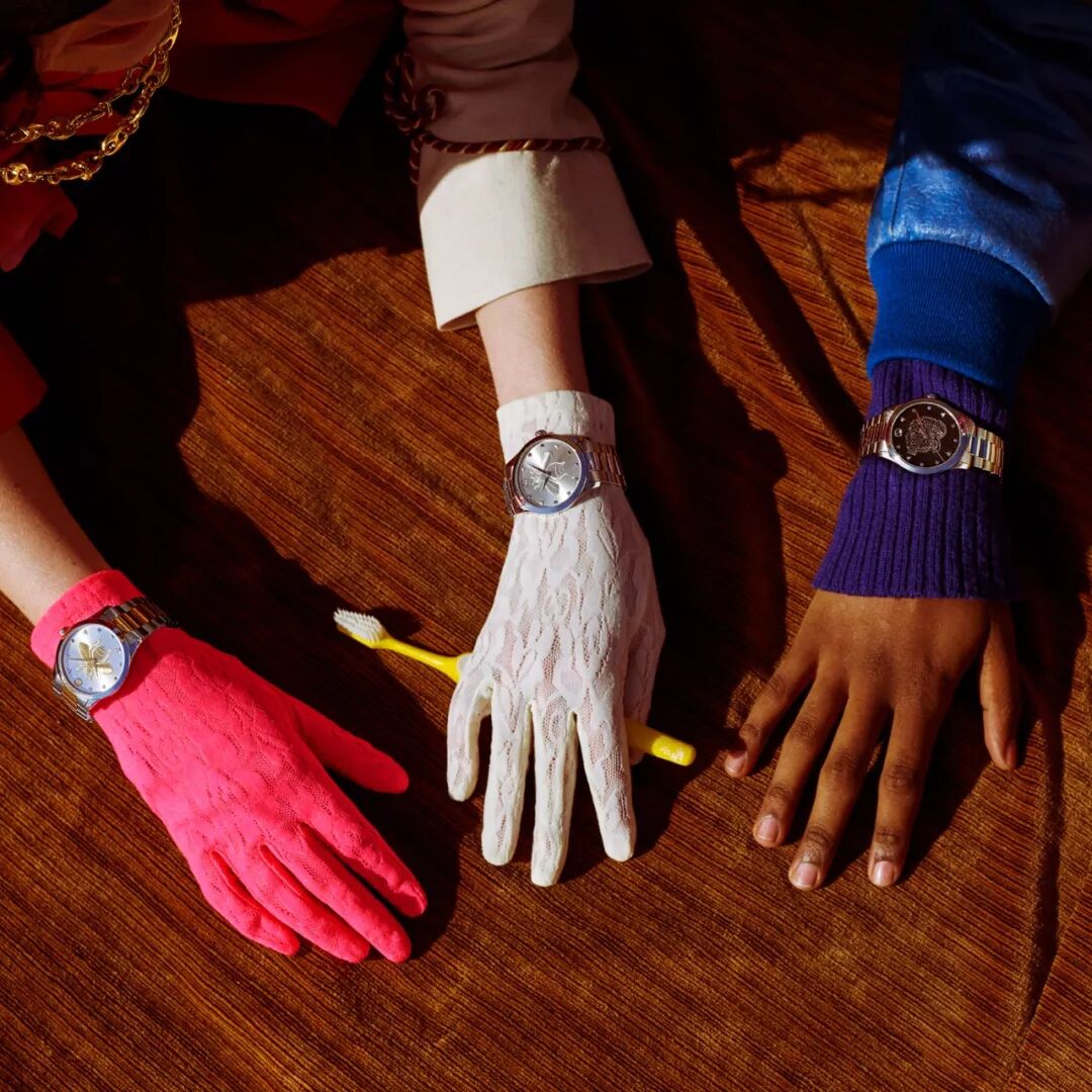 当然,如果你想要被GUCCI“全副武装”,那Gucci G-Timeless腕表自然不能旁落。况且它还特别适合送礼,名字寓意着“从瞬间走过永恒”。