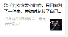此后有医生表示,刘欢自救的关键是“随身携带了速效救心丸”!