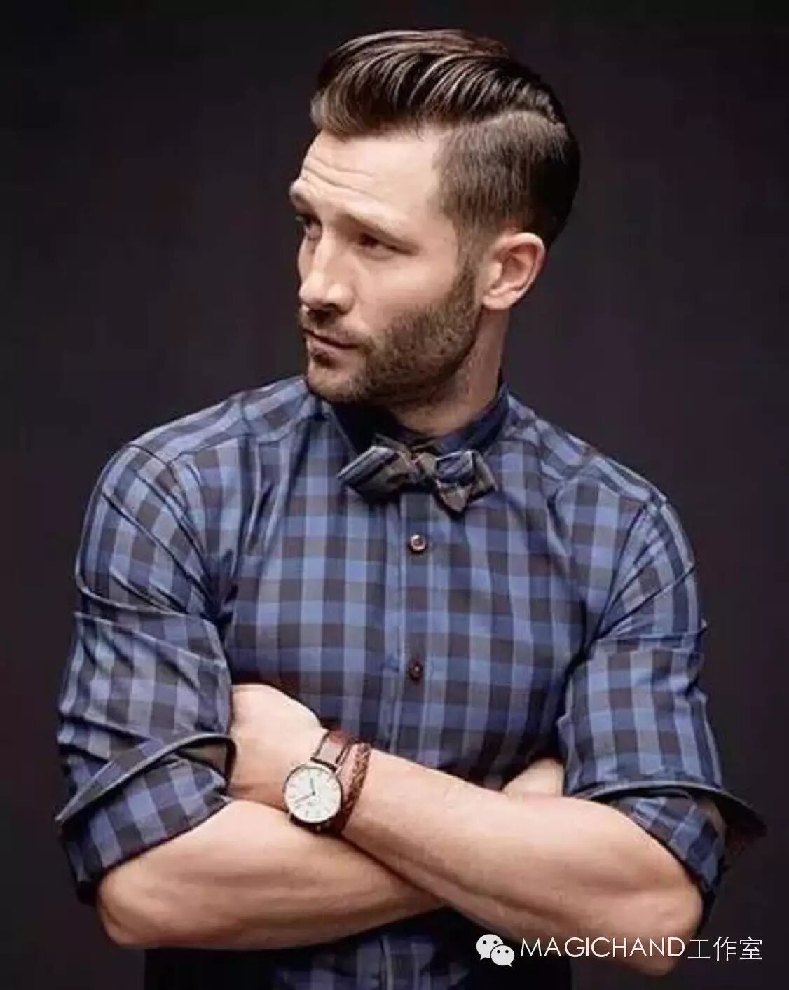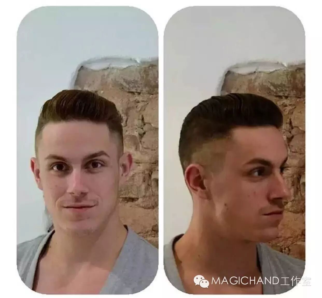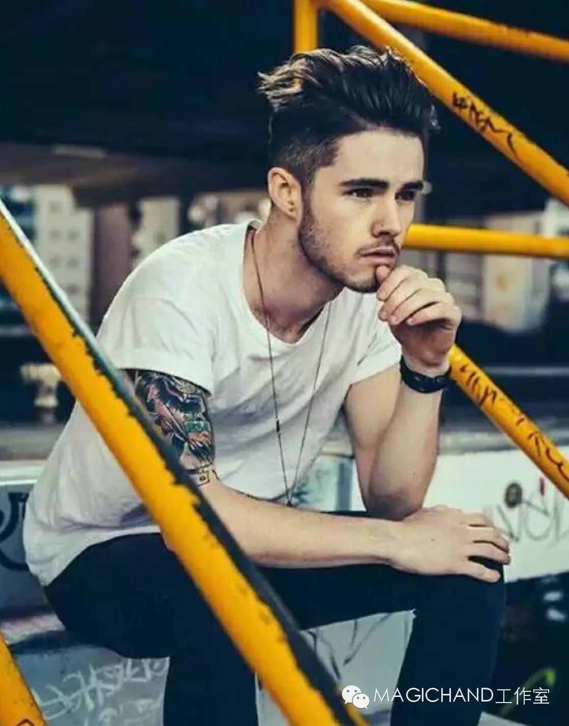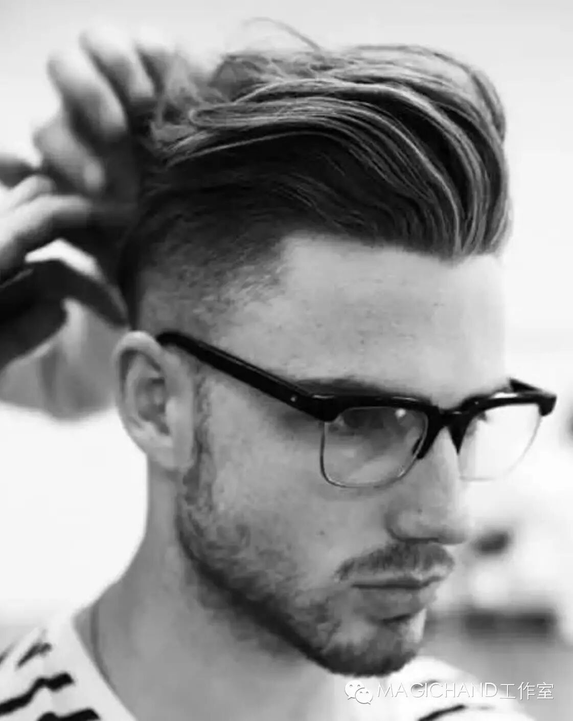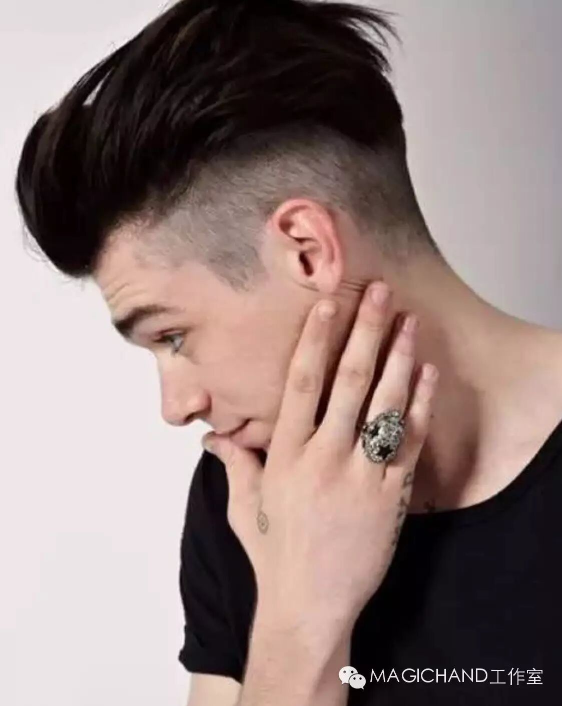 看到undercut发型,我们很自然的将它分为两部分,就是侧面和顶部。也正是两部分不同的造型的反差,才有让人更阳刚的感觉。