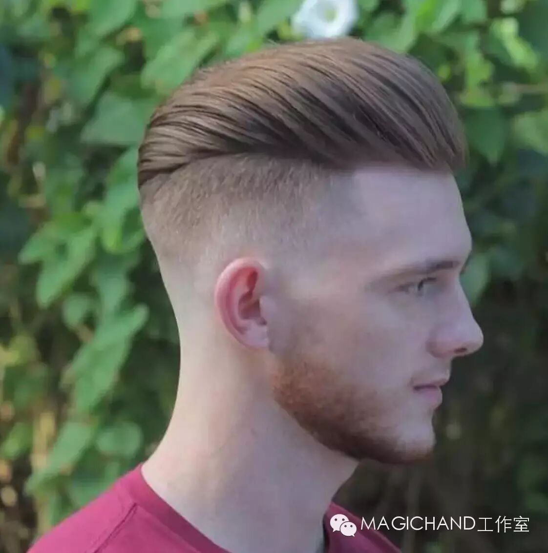 渐变型顾名思义就是侧面的头发由长到短。这里又可以分为两种,一种是皮肤型渐变,就是在耳朵的部分几乎剃光,露出头皮的造型。