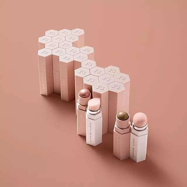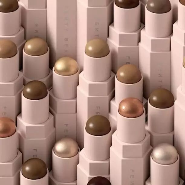 这次FENTY BEAUTY推出了妆前乳、眼影棒、高光等美妆产品,种类不多,只有16款左右。色号全部主打接近本身肤色的裸妆感系列。