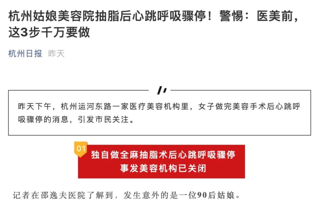 一家美容机构做全麻下腹部抽脂术,