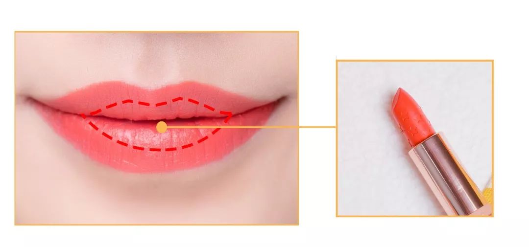 STEP2:填唇色的时候,在嘴唇的中间区域厚涂口红,再用棉签将口红向外晕染。