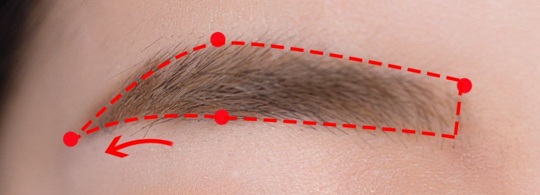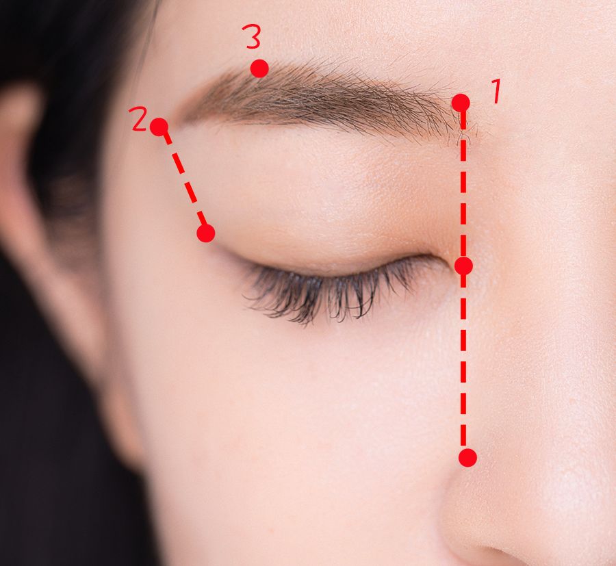 眉峰(定点3)与眉头持平,脸圆妹子可以让眉峰略高于眉头,视觉上能拉长脸型。