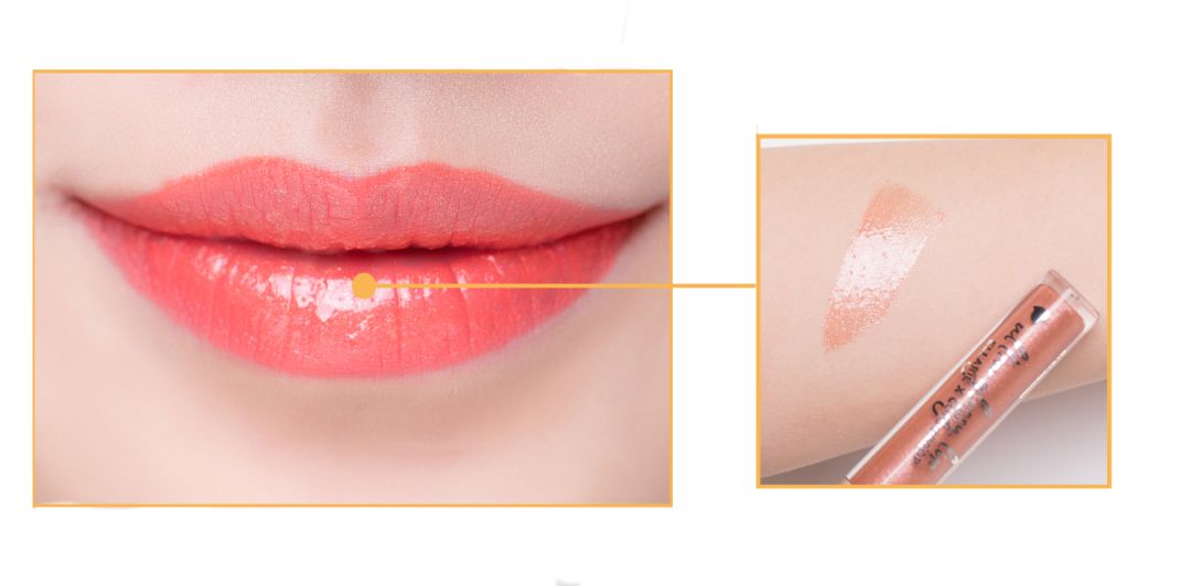 STEP3:后续再叠加一层珠光质感的唇蜜会让嘴唇更饱满、晶莹水润有质感。