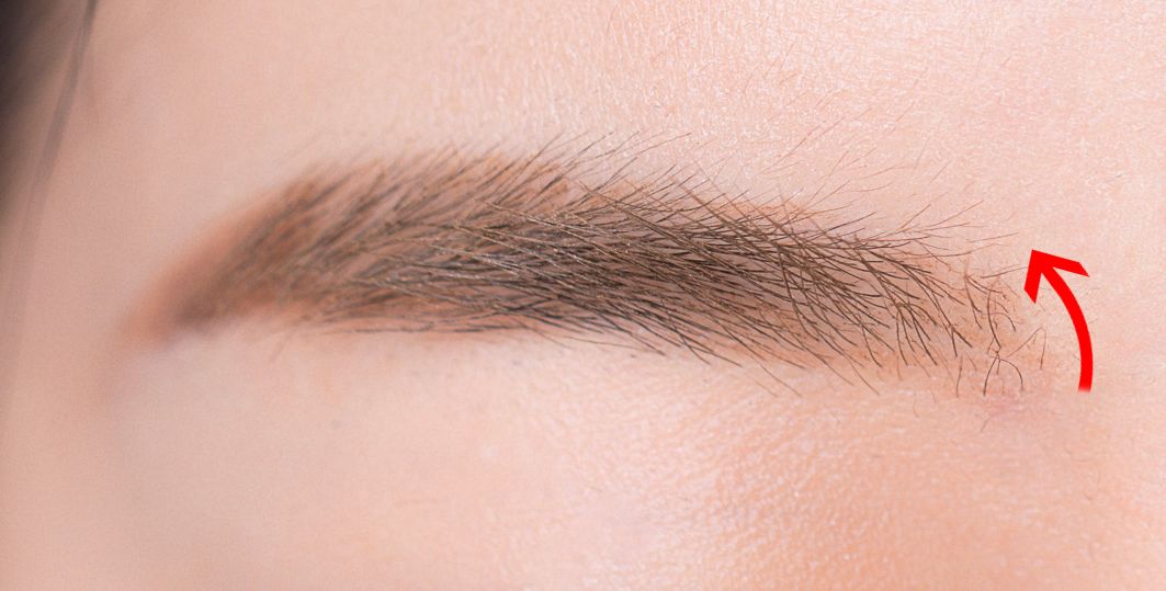 STEP2:勾勒上半部分眉形时,不要太强调眉峰;下半部分眉毛从后1/3处画下垂的线条。