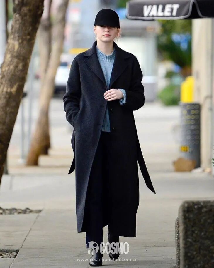 大衣中比较显身材的还有修身款,和松垮的绑带款不同,修身款完全靠剪裁强调腰线,突出身材曲线。不过这种款式会有点显死板,双排扣会比单排扣多一点时髦感。