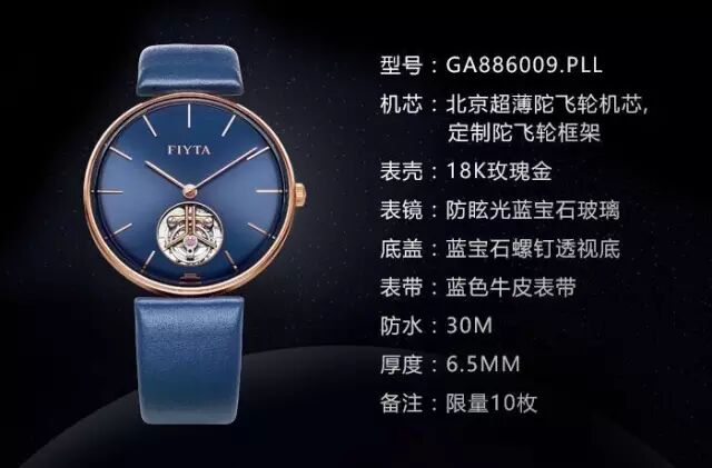 飞亚达X北京双品牌超薄陀飞轮腕表,整体厚度为6.5MM。机芯厚度仅为2.9MM,这意味着极致拼装,功能的简约取舍,更意味着低调优雅的品味升华。在这款凝聚着精密机械美学与优雅神韵的时计中,可窥见由157个零件和29颗宝石构成的机芯律动。同时腕表具有长达80小时的动力储存,将陀飞轮的动感艺术与机械复杂性诠释得尽善尽美。