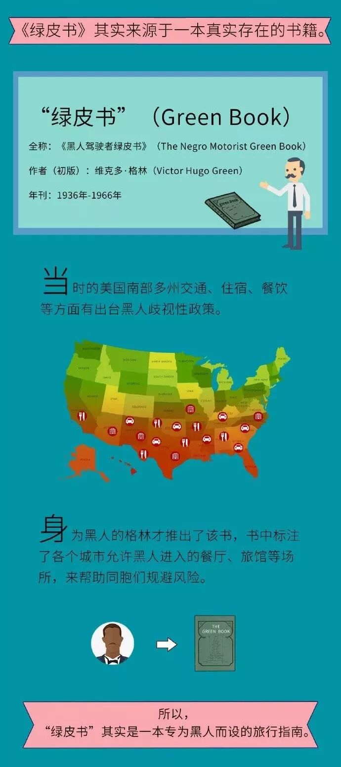 片名所说的《绿皮书》,就是在1936年真实出版过的旅游小册,全名为《给黑人驾驶的绿书》。