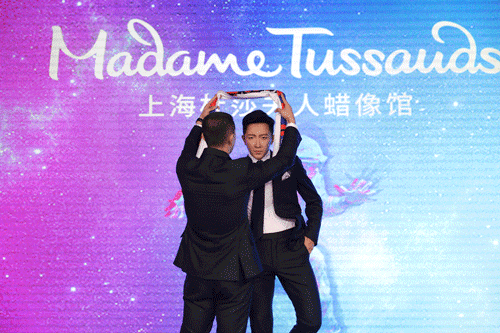 然后就是蜡像揭幕时间,韩庚怀着无比激动和喜悦的心情拉开幕布,终于要和自己的第一尊蜡像见面了!