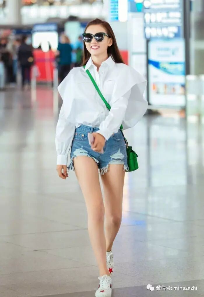 宽松白衬衫搭配牛仔热裤,浑身散发着青春朝气。