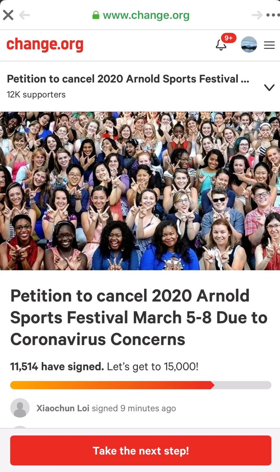人民有意见,领导不能不听,眼看网上签名反对者已达11514人,州长Mike DeWine坐不住了,虽然赛事能带来游客,带来生意,带来GDP增长,但惹得人民不高兴,不再让你做州长,也太没意思,就和阿诺商量:兄弟,那新冠病毒实在太凶猛,伊朗的领导班子已有好几个中招了,再牛B的健美先生只怕也抵挡不住,咱们还是低调一点,不要弄出太大动静吧。