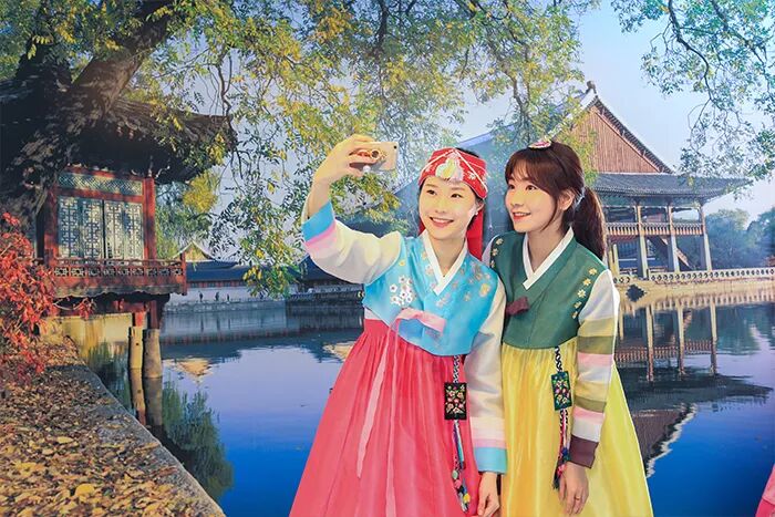5楼是韩国的传统衣类,免费试穿韩服拍照