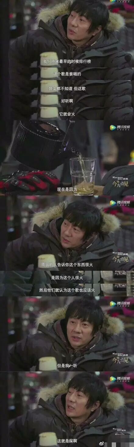 郑钧接着说不是因为我们脱节了,美好的东西,大家一直都会欣赏……很多歌是因为唱它的人火,然后大家就认为他的歌也火,郑钧还说:但是我一听,实在不行啊!