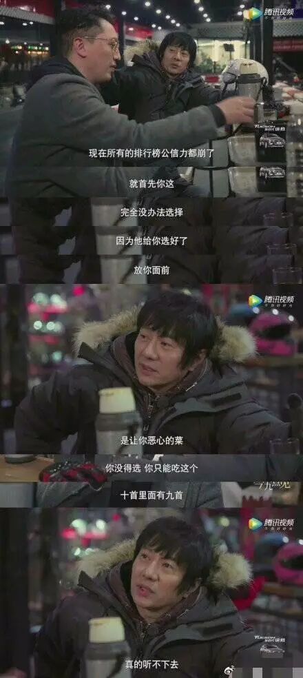 郑钧认为如今所有音乐排行榜的公信力都崩了,现在能登上各大榜单的歌曲并非是听众选择的,而是被安排好的。在他看来,很多排行榜上的歌就像恶心的菜,放在面前,看你吃不吃吧!