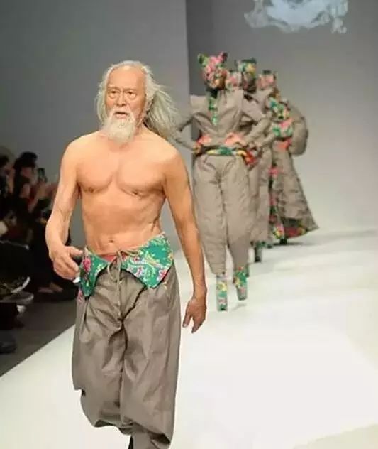 光着膀子当领队,满头银发却胸肌赫然▼