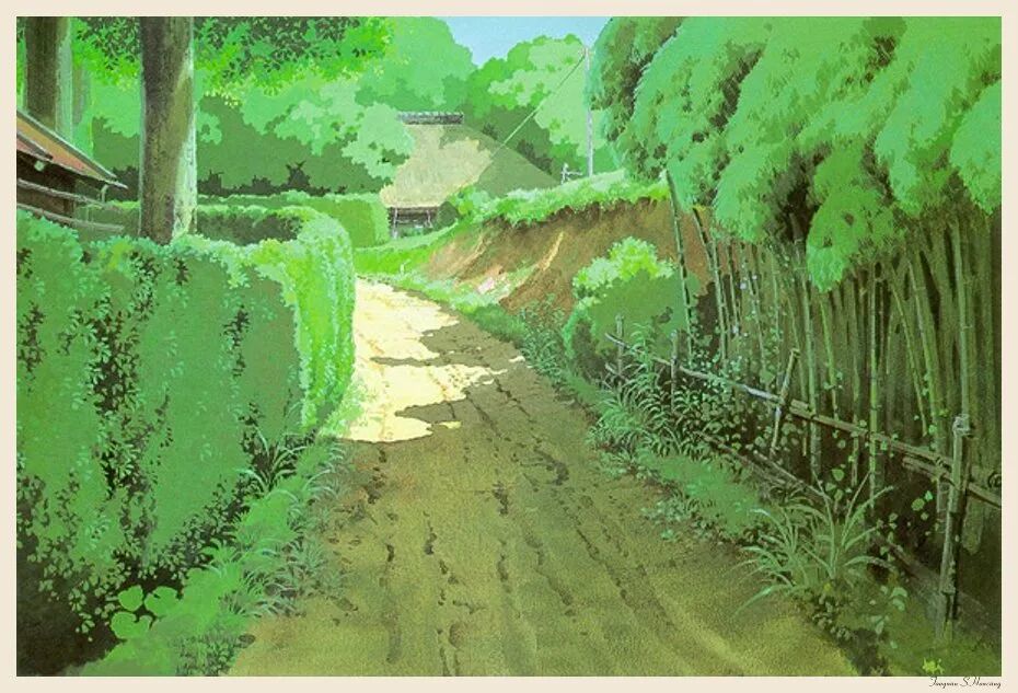 男鹿和雄,继《龙猫》(1988)之后,担任《红猪》(1991)、《平成狸合战》(1994)的美术监督,而《魔法公主》(1997)、《千与千寻》(2001)、《霍尔的移动城堡》则是参与了背景制作部份,他是吉卜力背景美术的重要支柱。